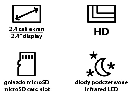 Rejestrator zapisuje filmy na popularnych i tanich kartach pamięci MicroSD. W zależności od ustawień, może rejestrować wideo ciągłe albo w interwałach czasowych. W tym drugim ustawieniu starsze nagrania są nadpisywane przez nowsze. Dodatkowo użytkownik może naciskając odpowiedni przycisk na obudowie wykonać pojedyncze zdjęcie. Podgląd zapisanych filmów odbywa się na 2,4-calowym ekranie LCD lub po podłączeniu do komputera.