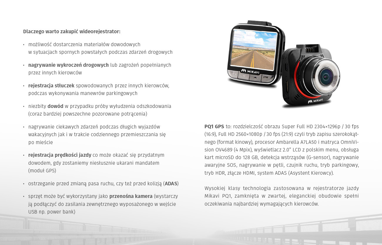 Wideorejestrator Mikavi PQ1 GPS