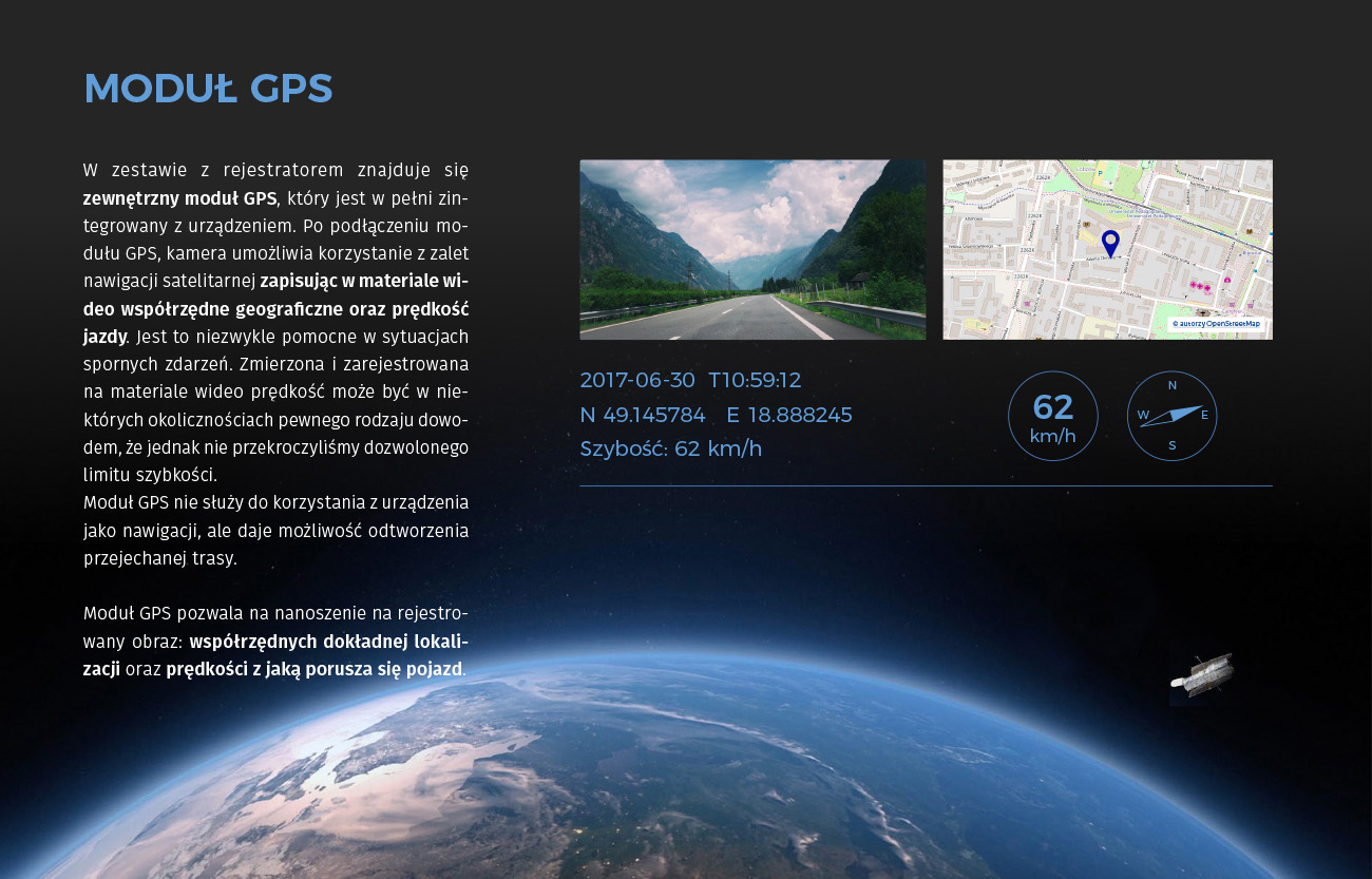 Odbiornik GPS zainstalowany na pokładzie kamery samochodowej pełni bardzo przydatne funkcje. Pozwala ustalić współrzędne geograficzne, na jakich aktualnie znajduje się pojazd, a także zmierzyć jego prędkość. Kolejnym atutem jest możliwość wizualizacji przejechanej trasy na mapie. To doskonała propozycja dla klientów, którzy zawsze stawiają na szerokie możliwości techniczne i poszukują praktycznych rozwiązań.