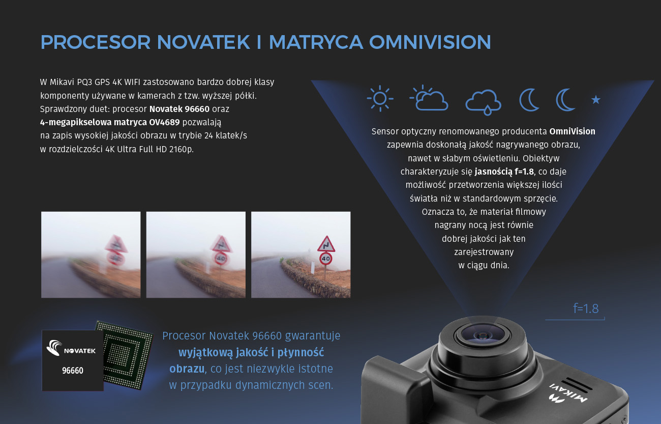 Wideorejestrator Mikavi PQ3 GPS 4K WiFi