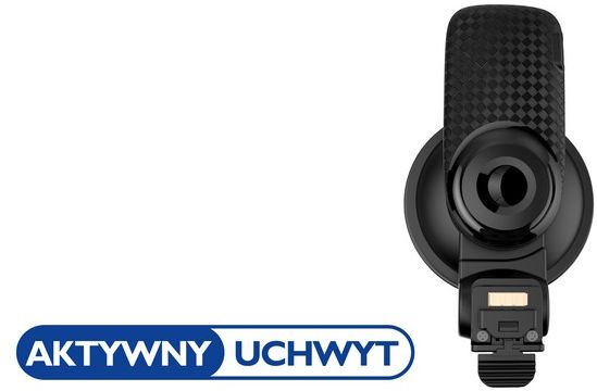 ![]() | Dedykowany uchwyt aktywny zapewnia stabilne mocowanie rejestratora na szybie samochodu. Pozwala on na szybką instalację kamery bez konieczności żmudnego, każdorazowego podpinania przewodu zasilającego bezpośrednio do niej. Ponadto wbudowany w uchwyt moduł GPS daje możliwość zapisu bieżącej lokalizacji pojazdu oraz jego prędkości. Wbudowany w urządzenie czuły mikrofon zarejestruje wszystkie dźwięki, jednak funkcję tę można bez problemu wyłączyć i nagrywać wyłącznie obraz. |