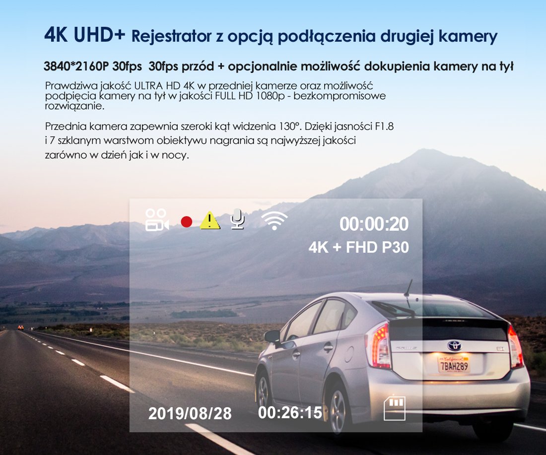 Najnowszy model z roku 2019: jest to pierwszy rejestrator samochodowy marki VIOFO posiadający kamerę z możliwością nagrywania w niezwykle wysokiej rozdzielczości 4K UHD.