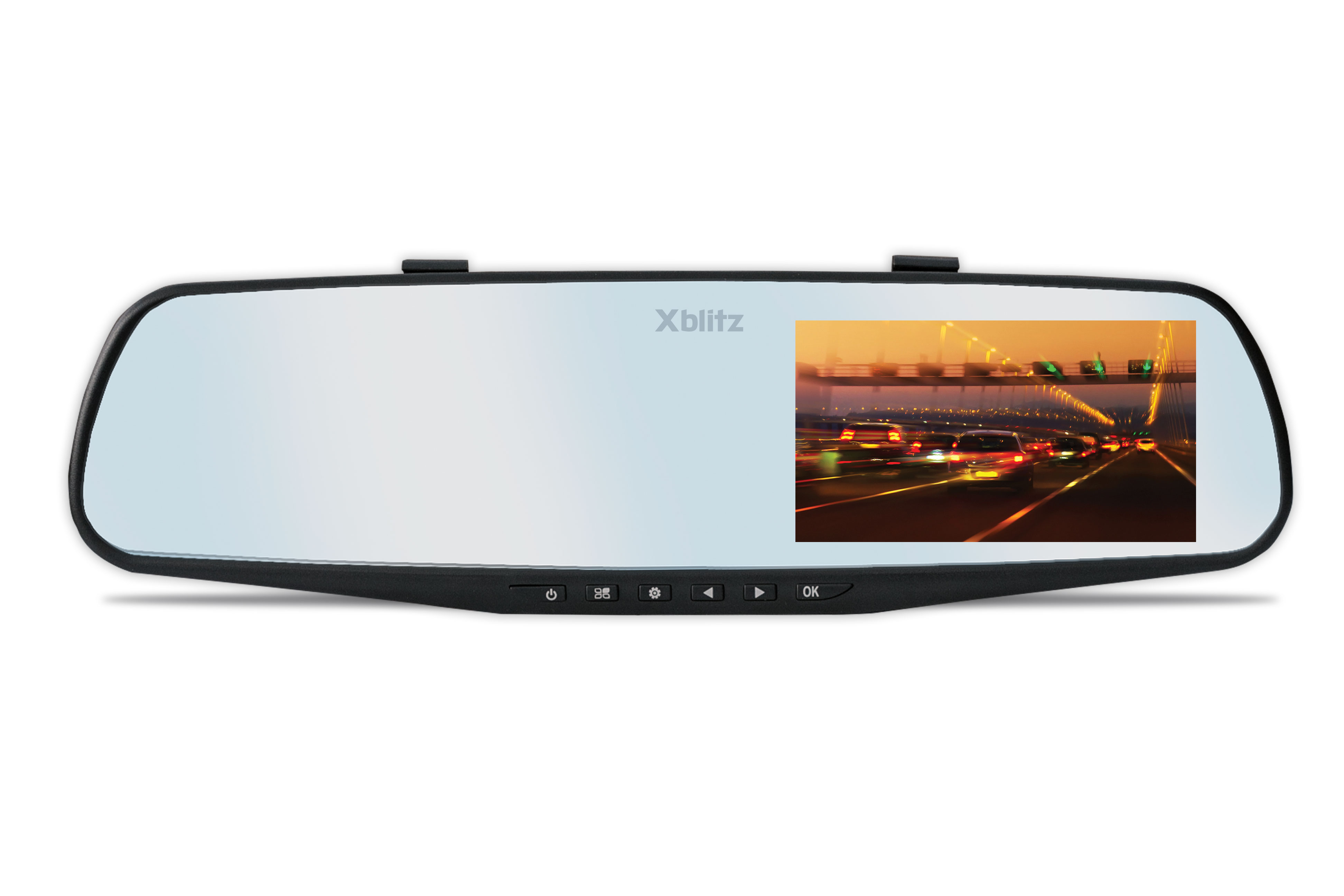 Xblitz Mirror 2016 to profesjonalna kamera samochodowa FULL HD 1920x1080p oraz rejestrator trasy z czujnikiem ruchu i funkcją aparatu cyfrowego. Wideo rejestrator jazdy Xblitz Mirror 2016 przeznaczony jest do umieszczenia na lusterku wstecznym za pomocą dwóch pasków zapinanych dzięki czemu jest bardzo proste w montażu jak i demontażu. Prawidłowe ustawienie kamery oraz podgląd rejestrowanego obrazu jest możliwy dzięki wyświetlaczowi 4.3 Cala znajdującemu się z prawej strony lusterka. Urządzenie posiada tryb nocny (2 diody doświetlające LED), detektor ruchu, automatyczny start nagrywania, nagrywanie cykliczne lub nagrywanie ciągłe. Zaopatrzone jest również w wbudowany mikrofon oraz głośnik i obsługuje karty pamięci micro SD / 32GB max.