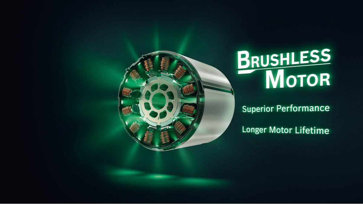 Technologia bezszczotkowa zapewnia wyższą wydajność i dłuższą żywotność silnika, ponieważ silnik pracuje bez zużywających się szczotek węglowych.