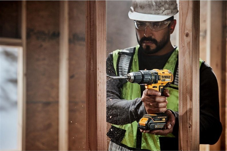 Nowa generacja kompaktowej udarowej wiertarko-wkrętarki XR 18 V z akumulatorami w technologii Li-Ion XR. Jednotulejowy uchwyt 13 mm z blokadą wrzeciona pozwalają szybko wymienić wiertło lub końcówkę wkrętarską jedną ręką. 2 zakresy i płynna regulacja prędkości oraz przełącznik kierunku obrotów dla maksymalnej kontroli pracy. Ergonomiczna konstrukcja spustu pozwala na pełna kontrolę. 16 wartości momentu obrotowego zapewnia optymalne wkręcanie i wiercenie wieloma średnicami w różnorodnych materiałach.