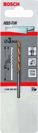 Wiertło Bosch do metalu HSS-TiN (3 x 33 x 61 mm)