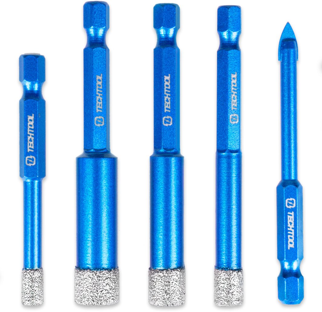 Wiertła diamentowe TECHTOOL charakteryzują się ergonomicznym designem, który zapewnia wygodę użytkowania. Kolor niebieski oraz gwint HEX ułatwiają montaż i demontaż, co sprawia, że praca z tym narzędziem jest szybka i bezproblemowa.