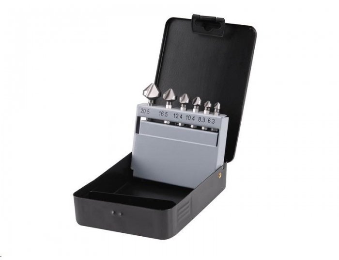 Zestaw wierteł dostarczany jest w praktycznej metalowej kasetce, która ułatwia przechowywanie oraz transport narzędzi. Dzięki temu wszystkie pogłębiacze są zawsze w jednym miejscu, co pozwala na szybki dostęp do nich w każdej chwili.