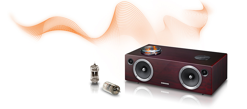 Bezprzewodowy systemBezprzewodowy system audio ze stacją dokującą Samsung z wbudowanym wzmacniaczem lampowym rewolucjonizuje sposób odbioru muzyki. Dzięki odtwarzaniu składowych harmonicznych system zapewnia bogatszy i cieplejszy dźwięk, który zadziwia wiernością odwzorowania. Natomiast optymalna równowaga tonalna każdego instrumentu w całym zakresie wysokości dźwięków to gwarancja pełnego, naturalnego i harmonijnego brzmienia – dokładnie takiego, jakim powinno ono być!