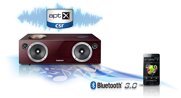 Dzięki technologii Bluetooth 3.0 oraz doskonałemu kodekowi apt-X przesyłanie muzyki nie wiąże się już z utratą jakości. Bezprzewodowy system audio ze stacją dokującą Samsung umożliwia strumieniowe przesyłanie danych bez typowego dla skompresowanych plików spadku jakości dźwięku. Na straży jakości brzmienia stoją wysoko oceniane przez użytkowników technologie Bluetooth 3.0 oraz apt-X, które pozwalają na przesyłanie muzyki nawet w jakości płyt CD. Właśnie dlatego technologie te powinny stać się obowiązkowymi składnikami rozwiązań wykorzystywanych przez osoby zwracające uwagę na jakość przesyłanego dźwięku.