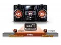 Jeśli chcesz zabłysnąć i w roli didżeja skorzystać ze swojego odtwarzacza MP3 lub starego odtwarzacza CD, funkcja Portable Audio In firmy Samsung umożliwi podłączenie dowolnych urządzeń audio, dzięki którym dźwięki ulubionych utworów rozlegną się w pełnym brzmieniu zestawu micro. Wygodnie umiejscowione wejście na przednim panelu sprawia, że podłączanie to pestka.