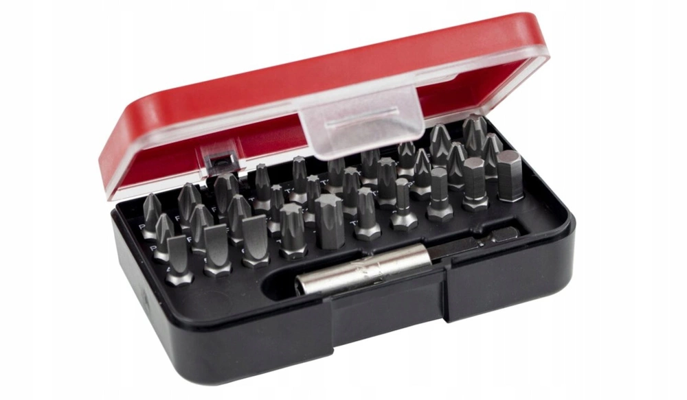 Wysokiej jakości końcówki wkrętarskie WIHA z magnetycznym uchwytem do końcówek oraz z adapterem. Całość znajduje się w plastikowej kasetce z funkcjonalnym zaczepem do paska.