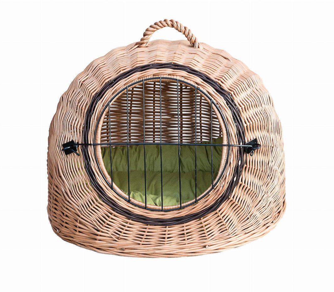 Wiklinowy transporter budka dla kota i innych zwierząt owalny kosz budka z metalowym zamknięciem i z poduszką