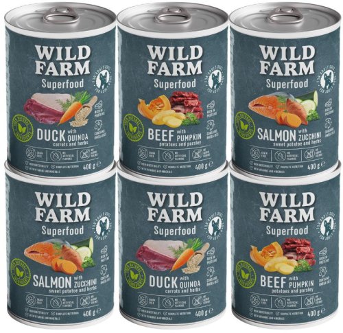 WILD FARM Superfood Mix Smaków 6x400g bezzbożowa karma dla psa