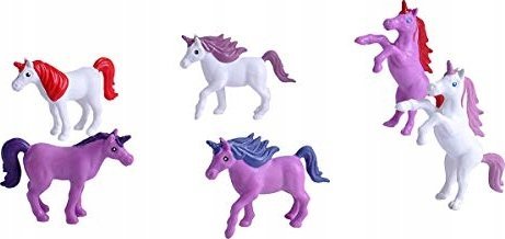 Zestaw figurek do gry składa się z 6 różnych jednorożców, które są ręcznie malowane.