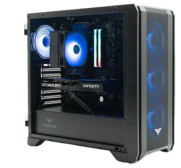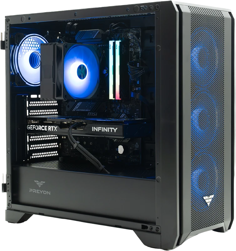 Poznaj komputer stacjonarny Preyon Windy Pro - komputer stacjonarny, który jest nie tylko maszyną do gamingu, ale i stylem życia. Preyon Windy Pro to połączenie mocy, stylu i precyzji, idealne dla tych, którzy szukają czegoś więcej niż zwykłego komputera. Preyon Windy Pro to nie tylko komputer stacjonarny - to centrum Twojego gamingowego świata. Idealny do gier, potężny w każdym zadaniu, z unikalnym stylem i precyzją wykonania. Dla graczy, którzy cenią sobie wydajność, styl i technologię, Preyon Windy Pro jest oczywistym wyborem.