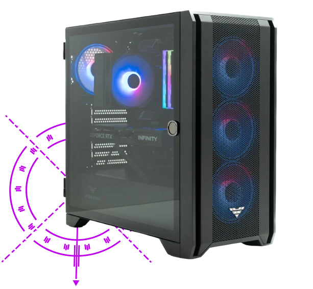 Podświetlenie ARGB dodaje Preyon Windy Pro nie tylko stylu, ale i pozwala na personalizację komputera. Możesz dostosować kolory i efekty świetlne, aby pasowały do Twojego setupu i nastroju. Podświetlenie nie tylko podkreśla nowoczesny design Preyon Windy Pro, ale jest również praktyczne, ułatwiając orientację w portach i komponentach. To sprawia, że ten komputer stacjonarny jest nie tylko wydajnym narzędziem do gier, ale także stylowym elementem każdego gamingowego setupu.