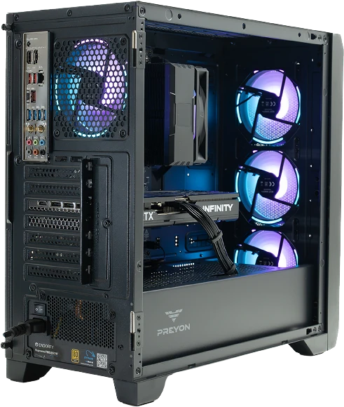 Ten unikalny design i charakterystyczne dla marki Preyon detale sprawiają, że jest to komputer, który chce się pokazać i który staje się centralnym punktem każdego gamingowego setupu. To idealny wybór dla tych, którzy cenią sobie połączenie wydajności, nowoczesnej technologii i wyjątkowego stylu.
