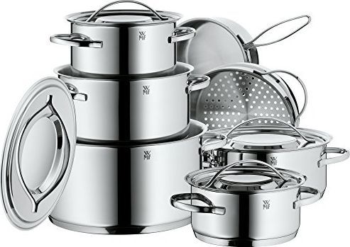 WMF Zestaw garnków WMF Gala Plus, sztuki 7, stal nierdzewna polerowana Cromargan, garnki z metalową pokrywką, garnki indukcyjne, garnek indukcyjny, niepowlekany