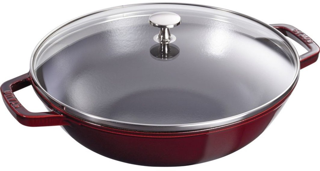 Wok żeliwny STAUB 30 cm grenadynowy z pokrywką