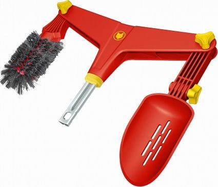 Połączenie z trzonkiem teleskopowym umożliwia łatwe i bezpieczne oczyszczanie rynien Regulowany kąt roboczy z obu stron dla elastycznego użytkowania Wymienny korpus szczotki ze zintegrowanym zgarniaczem do usuwania uporczywego brudu i liści Łopatka umożliwiająca usunięcia brudu i zebranych zanieczyszczeń