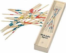 Tradycyjna gra drewniana pomagająca w ćwiczeniu koncentracji, uwagi i sprawności manualnej. Potrzeba przecież nie lada skupienia, żeby wyciągnąć jeden patyczek nie poruszając przy tym innych. Bierki poznaczone różnymi kolorami, dzięki czemu jedne są bardziej wartościowe od innych. Można grać tak, że każdy wzór to inna liczba punktów lub po prostu każdy patyczek to jeden punkt. Całość zapakowana w drewniane rozsuwane pudełeczko, dzięki któremu łatwiej będzie utrzymać grę w porządku. Te bierki są większe od tradycyjnych. Długość jednego patyczka to 30 cm.