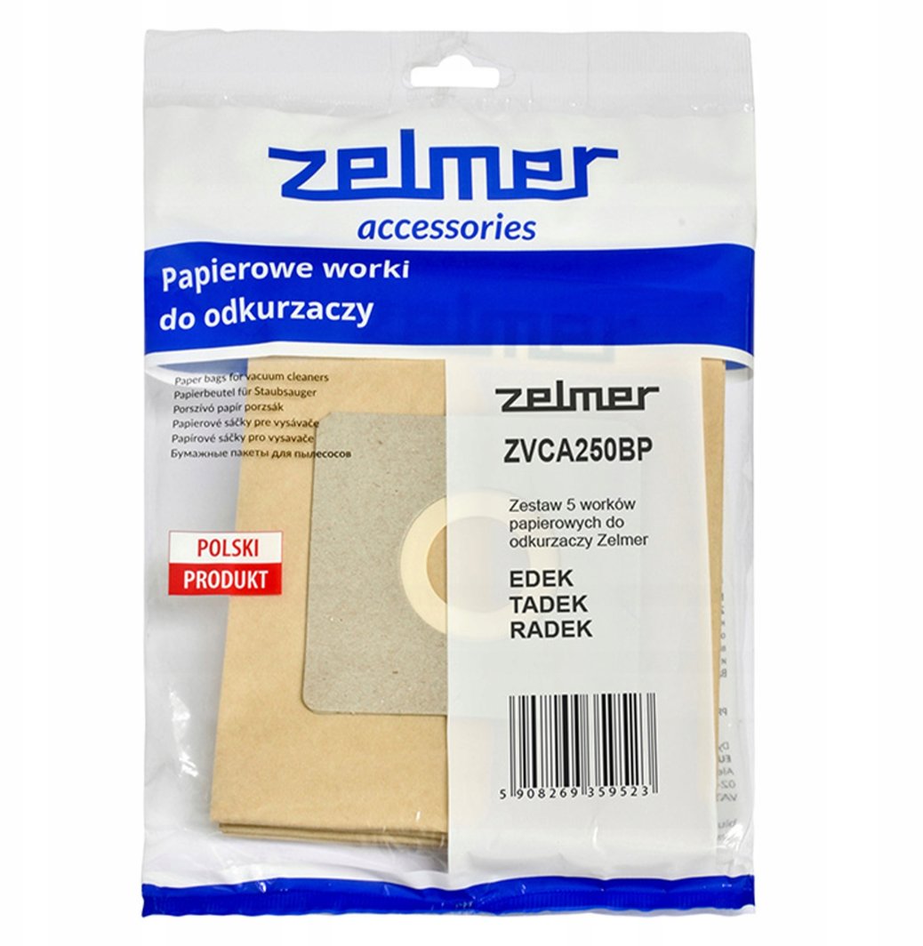 Zestaw worków papierowych ZVCA 250 BP to doskonałe rozwiązanie dla właścicieli odkurzaczy Zelmer Edek i Tadek. Te oryginalne akcesoria, idealnie dopasowane do modeli ZVC251, ZVC261 oraz ZVC262, gwarantują maksymalną wydajność oraz optymalne działanie Twojego odkurzacza.