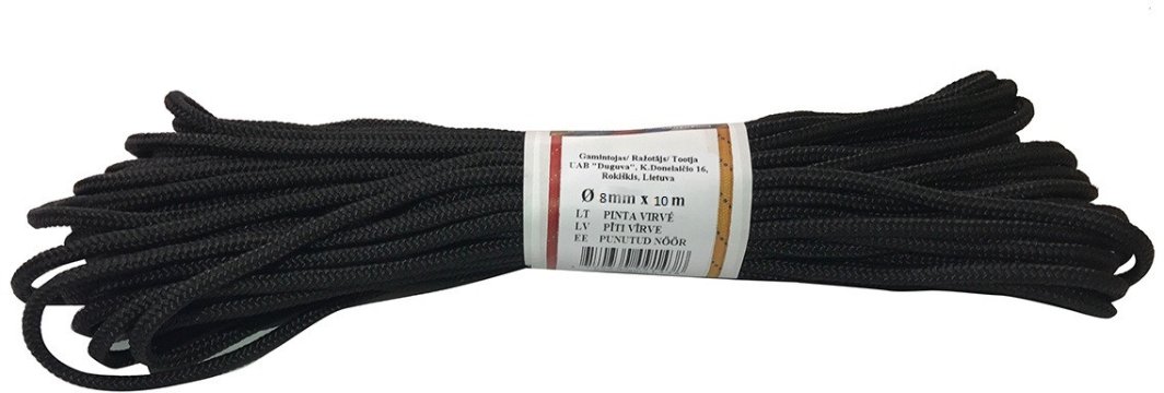 WOVEN POLYAMIDE ROPE BLACK 8MM 10M