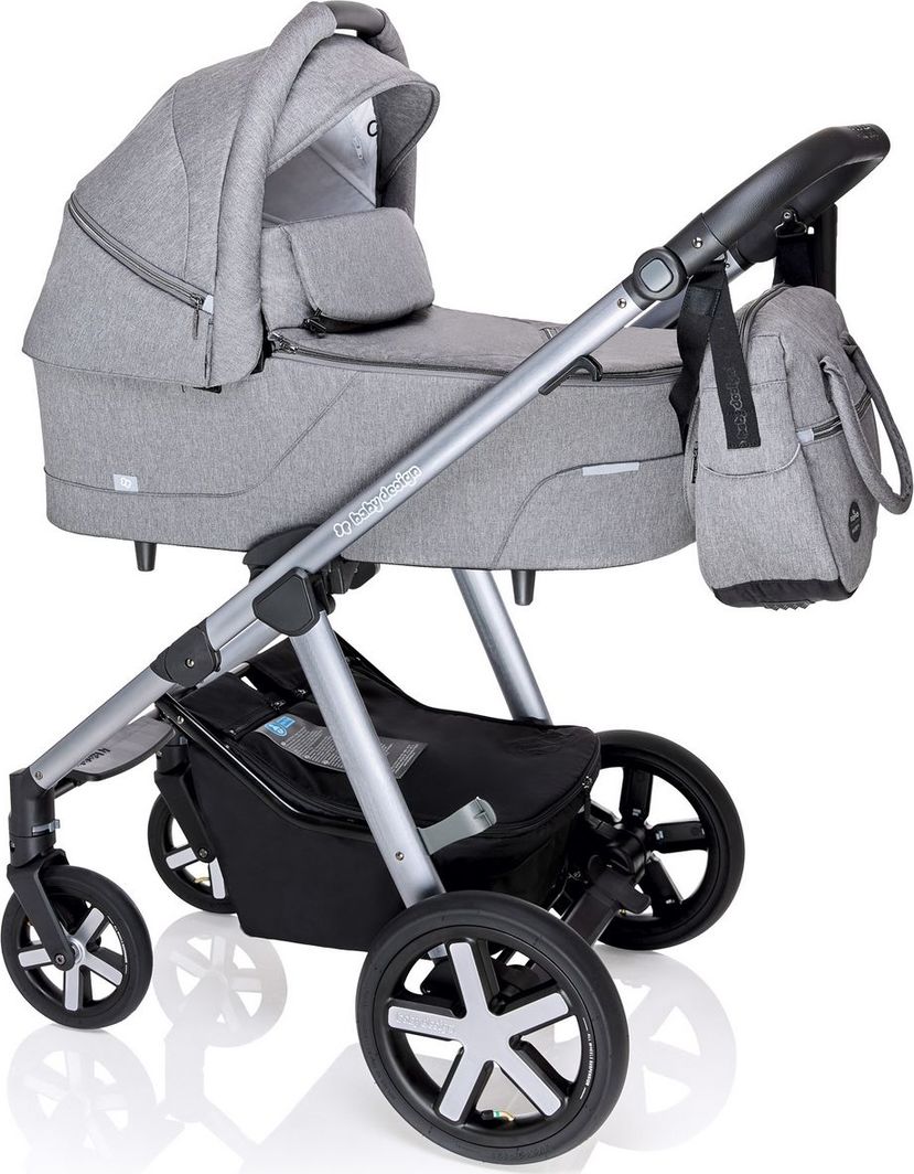 Nowa konstrukcja. Perfekcyjnie zaprojektowana i lżejsza. Teraz składanie wózka jest jeszcze łatwiejsze, bez względu na sytuację. Nowy design elementów konstrukcji to komfortowa obsługa, bez niepotrzebnej straty czasu. Ergonomiczne przyciski ułatwiają rozkładanie i składanie wózka wszystkim rodzicom. Zmienione proporcje kół i wygląd z przodu: unikalny, spójny wygląd i pełen komfort prowadzenia wózka na każdej drodze. Nowoczesny i zmieniony kształt podnóżka zapewnia perfekcyjny wygląd wózka.