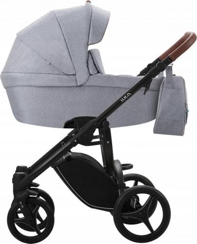 Luca to przede wszystkim elegancja. Jednobarwna tapicerka oraz eleganckie brązowe bizy sprawiają, że jest to idealne rozwiązanie dla osób stawiających na szykowny wygląd. Plastikowe dno gondoli obszyto tapicerką, co sprawia, że wózek zdecydowanie wyróżnia się w swojej klasie. Torba pielęgnacyjna o kanciastym kształcie nie tylko doskonale wygląda, ale także jest bardzo pojemna i pozwoli na przewóz akcesoriów potrzebnych podczas spacerów z niemowlakiem.