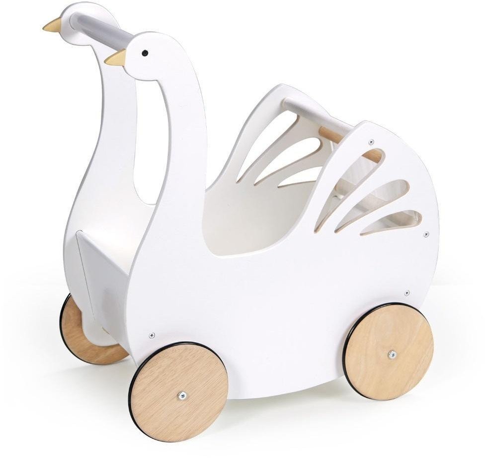 Wózek dla lalek z akcesoriami Łabędź, Tender Leaf Toys Drewniany wózeczek dla lalek z baldachimem, materacykiem, narzutą i poduszką. Piękny biały wózeczek w kształcie łabędzia z baldachimem z tkaniny. Ma drewniane kółka z gumową obwódką. W komplecie znajduje się różowy materac, muślinowa narzuta i poduszka wykończone falbanką. W takim wózeczku ulubione lalki będą mogły wygodnie jeździć na spacery i drzemać na świeżym powietrzu. Do kompletu do wózka można dokupić piękną, białą kołyskę dla lalek. Nasze zabawki produkowane są z drzewa kauczukowego, pochodzącego z kraju położonego na 13 tysiącach rajskich wysp - Indonezji. Do ich pomalowania użyliśmy bezpiecznych i delikatnych farb, dzięki czemu drewno zachowało swój wygląd i widoczną strukturę. Drewno kauczukowe cechuje się wyjątkową wytrzymałością, co jest niewątpliwym atutem zabawek Tender Leaf Toys. W Tender Leaf Toys dbamy o rozwój planety. Zabawki Tender Leaf Toys tworzone są z myślą o najmłodszych przez brytyjską projektantkę Danielle Hanson, która od lat związana jest z branżą dziecięcą. Dzięki jej doświadczeniu, pasji i niezwykłej wyobraźni, zabawki marki Tender Leaf Toys pięknie odwzorowują detale otaczającego nas świata, jak również dbają o rozwój zdolności manualnych i poznawczych dzieci. Wszystkie etapy produkcji zabawek Tender Leaf Toys odbywają się w jednym miejscu, z najwyższą dbałością - w egzotycznej Indonezji, kraju słynącym z poszanowania dla własnej kultury i zasobów. Zestaw zawiera: Wózek ** materac ** narzuta ** poduszka Produkt przeznaczony dla dzieci powyżej 3 lat. Wymiary zabawki: 43.5 x 29.5 x 50 cm