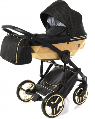 Wózek Junama JUNAMA MIRROR SATIN wózek wielofunkcyjny 3w1 V2 Czarno Złoty