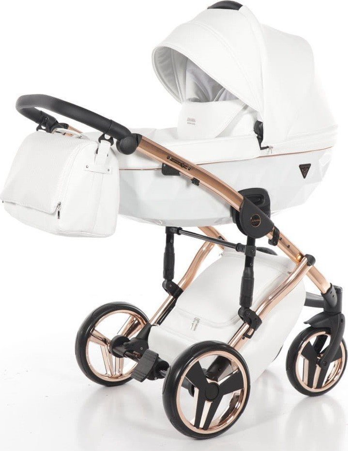 Wózek Junama Wózek JUNAMA DIAMOND INDIVIDUAL dziecięcy wielofunkcyjny 3w1 biały 06 na miedzianej ramie