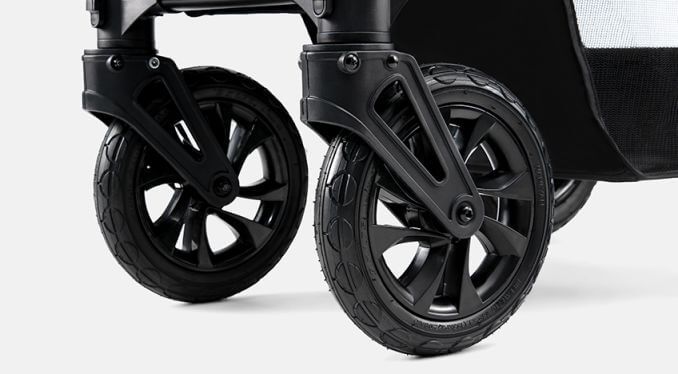 Amortyzacja we wszystkich kołach, centralny hamulec, duże, pompowane koła i lekka, zwrotna konstrukcja sprawiają, że to wózek do zadań specjalnych.