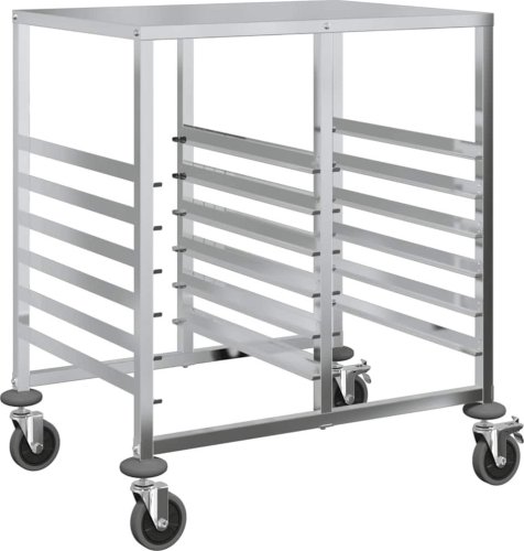 Zwiększ efektywność pracy w swojej kuchni dzięki wózkowi na tace, który jest wytrzymały i łatwy w czyszczeniu.