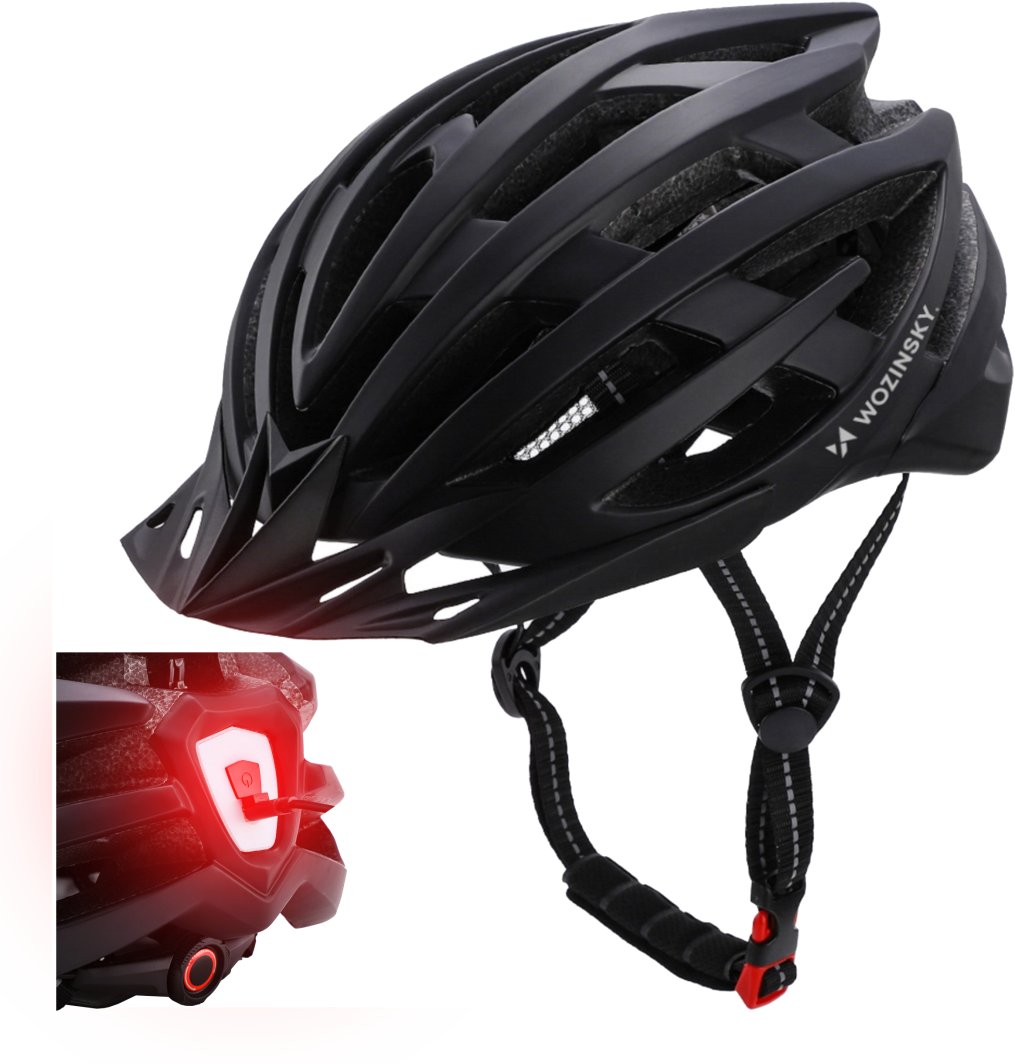 Wozinsky Kask rowerowy z odpinanym daszkiem i tylną lampką USB 54-57 cm - czarny WOZINSKY