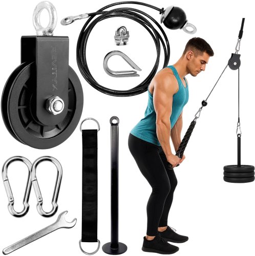 Wyciąg górny i dolny marki Revity to znakomite rozwiązanie dla tych, którzy chcą skutecznie trenować siłowo w komfortowych warunkach swojego domu. Ten kompletny zestaw montażowy zawiera wszystko, co jest potrzebne do rozpoczęcia treningu, w tym kołowrotek, stalową linkę, karabińczyki, pasek montażowy oraz uchwyt na ciężary. Dzięki temu zestawowi możesz w pełni wykorzystać potencjał swojego treningu, angażując różne grupy mięśniowe.