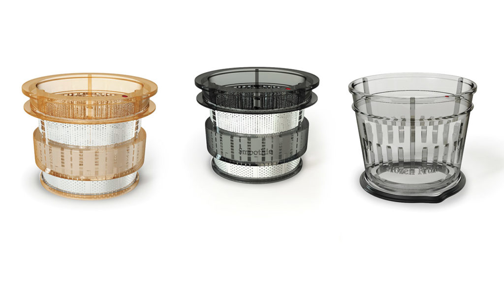 Slow Juicer wyposażony jest w 3 rodzaje sitek do samodzielnego przygotowania lodów, soków oraz napojów somoothie.