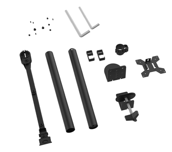- ✅uchwyt wraz z potrzebnymi akcesoriami do montażu (w tym ze śrubami do instalacji monitora oraz ochronną podkładką do instalacji w otworze blatu biurka)