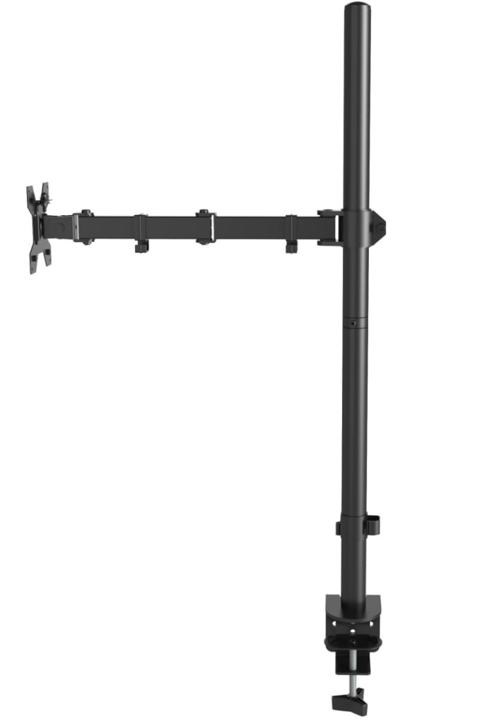 - Regulowane w 4 punktach ramię o długości 43,7 cm (liczonej od środka pionowej rury do płyty mocującej monitor)