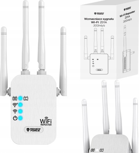 Wzmacniacz sygnału Wi-Fi Renew Force Z01A to doskonałe rozwiązanie dla tych, którzy pragną zwiększyć zasięg oraz stabilność swojej sieci bezprzewodowej. Dzięki wsparciu dla standardu 802.11n (Wi-Fi 4) oraz maksymalnej prędkości transmisji do 300 Mb/s, użytkownicy mogą cieszyć się płynnością podczas przeglądania internetu, strumieniowania wideo oraz grania online.