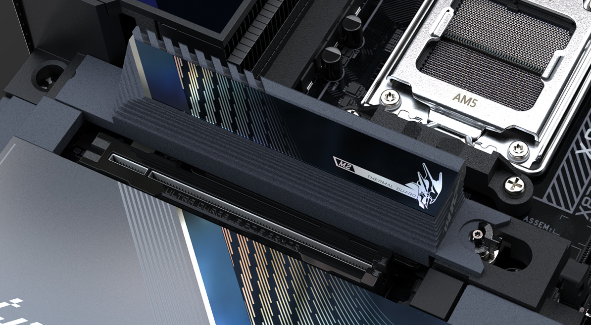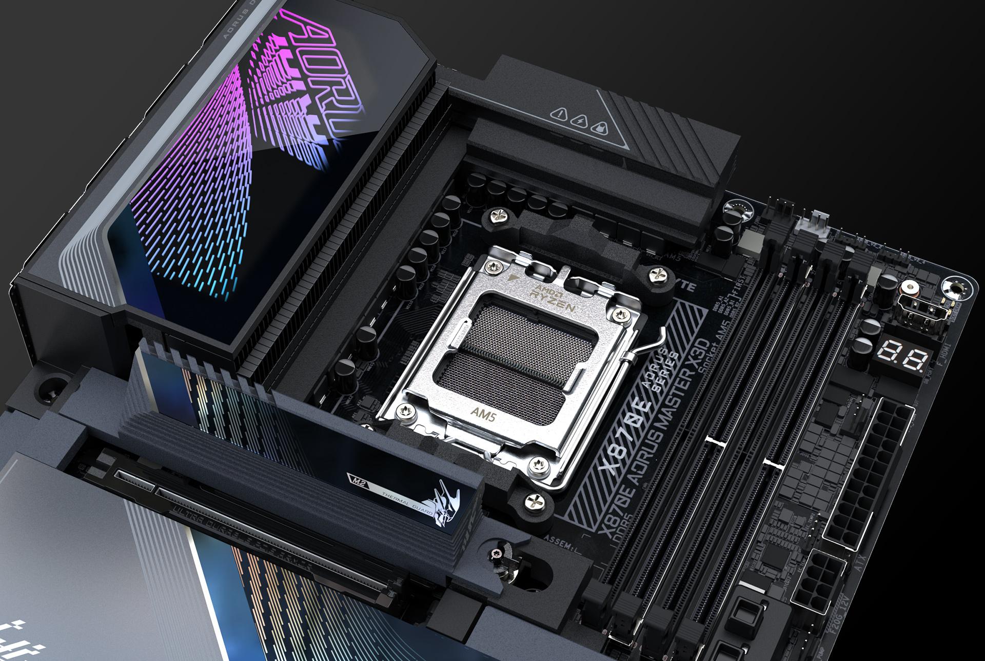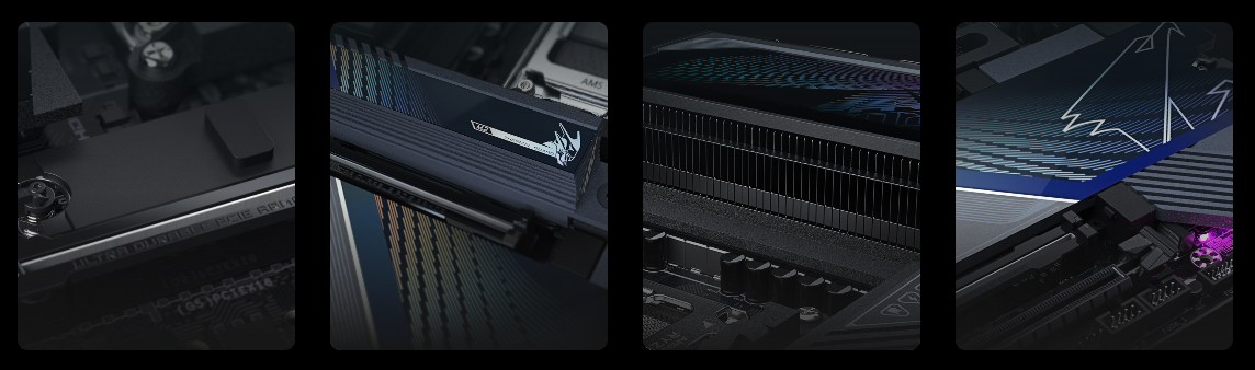 Aby utrzymać optymalną wydajność ultraszybkich dysków SSD M.2, płyta X870E AORUS MASTER X3D została wyposażona w zaawansowany system chłodzenia. Obejmuje on pięć slotów M.2 z dedykowanymi, dużymi radiatorami M.2 Thermal Guard oraz rozwiązaniem M.2 EZ-Flex z opatentowaną elastyczną płytą bazową i Thermal Guard Ext na najważniejszych slotach. Te masywne radiatory, w połączeniu z płytką drukowaną z podwójną ilością miedzi, zapewniają wydajne odprowadzanie ciepła, zapobiegając termicznemu dławieniu (throttlingowi) i utrzymując maksymalną prędkość transferu danych.
