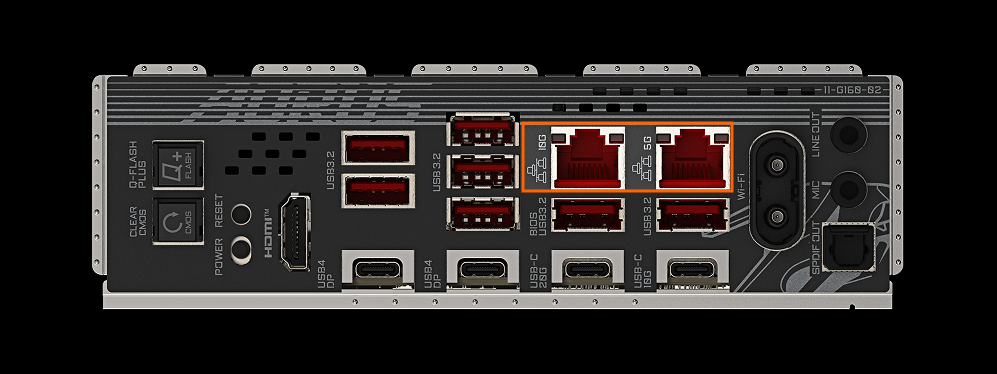Płyta główna oferuje rewolucyjne opcje sieciowe, które sprostają wymaganiom najbardziej intensywnych obciążeń i gier online. Wbudowana karta sieciowa Wi-Fi 7 (802.11be) zapewnia ekstremalnie niskie opóźnienia i bardzo wysoką prędkość bezprzewodowego transferu danych, dodatkowo wspierana jest przez innowacyjną, kierunkową antenę Ultra-high gain. Ponadto, do dyspozycji są dwa porty LAN: jeden superszybki 10GbE (10 gigabitów) oraz jeden 5GbE, co daje użytkownikowi wybór i gwarantuje przyszłościowe połączenie przewodowe.