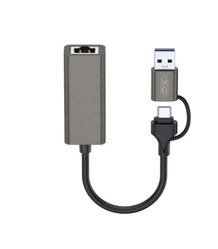 XO adapter HUB HUB018 2w1 USB-USB-C - RJ45 szary – Szybkie połączenie internetowe