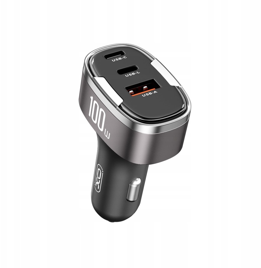 XO ładowarka samochodowa CC61 PD QC 3.0 100W 1x USB1x USB-C 1x Lightning szara