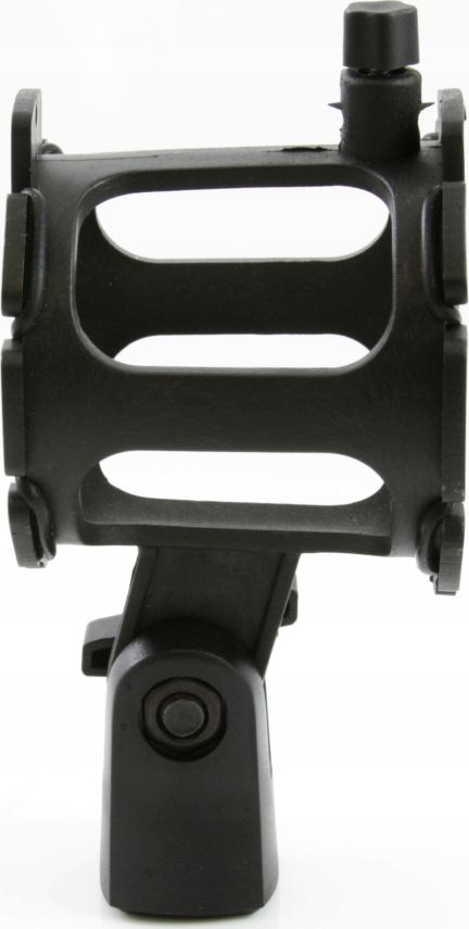 Mikrofon w koszu antywibracyjnym mocowany jest przy pomocy uchwytu zaciskowego. Uchwyt pasuje do mikrofonów o średnicy od 15mm do 42mm w związku z czym bez problemu zamocujemy w nim większość dużych studyjnych mikrofonów pojemnościowych.