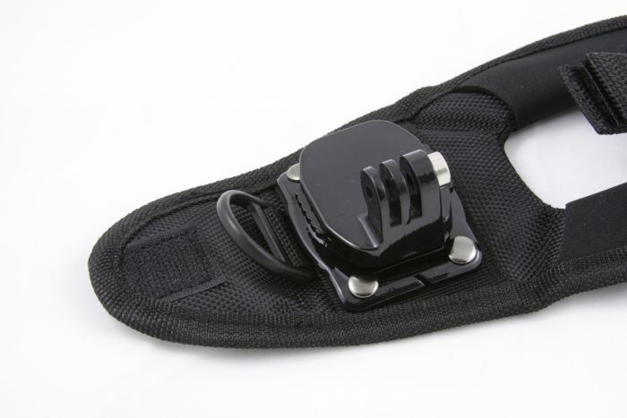 Uchwyt składa się ze sztywnego mocowania, uchwytu z obrotową o 360 stopni głowicą, do którego podpinana jest kamera oraz elastycznego paska na rzep, wykonanego z materiału neoprene, pozwalającego na pewne i stabilne zamocowanie.
