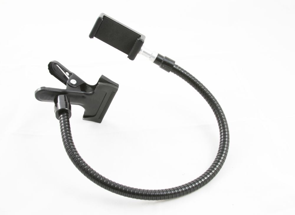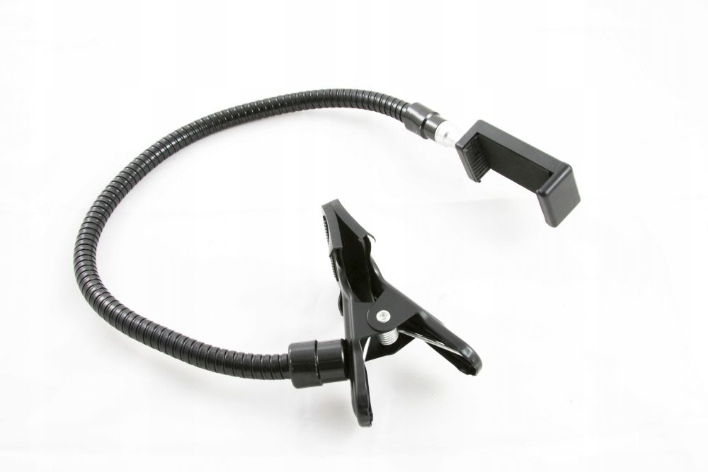 Dodatkowo elastyczne ramie umożliwia dowolne ustawienie pozycji telefonu względem mocowania.
