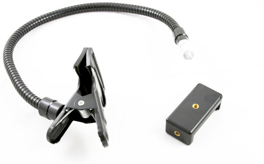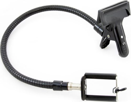 Z drugiej strony uchwyt elastyczny zakończony jest głowicą gwintową (1,4'') z uchwytem statywowym, który posiada dwa mocowania ze standardowym gwintem 1,4'', umożliwiające zamocowanie telefonu zarówno w pionie jak i poziomie względem uchwytu elastycznego. Dzięki temu położenie telefonu może być płynnie regulowane w zakresie 360 stopni.