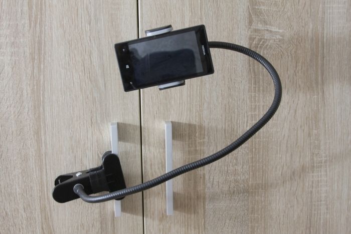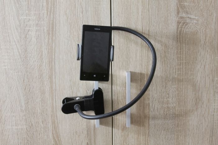 Uchwyt idealnie nadaje się do zamocowania telefonu na ramie łóżka, na krześle, przy stole, na płocie, drzwiach, ramie okna, parapecie, przy biurku, na kierownicy samochodu oraz w wielu innych miejscach.
